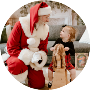 The Classic Santa experience is designed just for Santa and your children. This 7 minute long experience will give them time to chat with Santa about their wish list, hear some stories about their reindeer and give lots of hugs! This session includes 5 digital images of your choice to download.